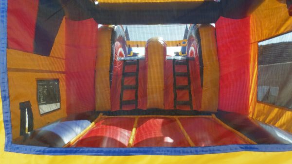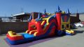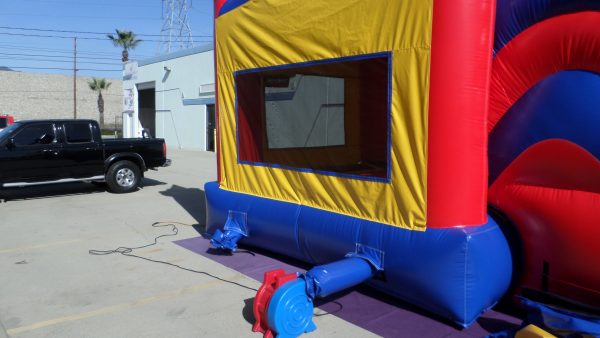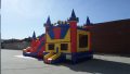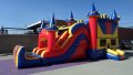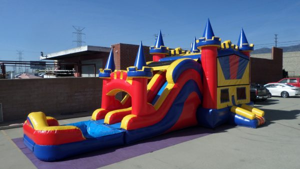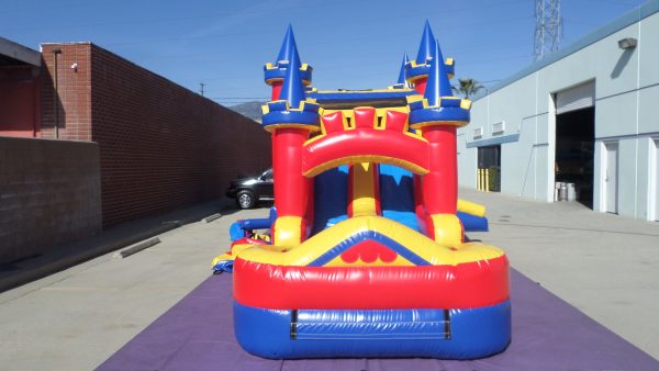 Bring big fun to any party with this colorful inflatable wet & dry castle combo. Designed like a vibrant royal castle with majestic wizard hat towers, this unit features a spacious bounce area, tall dual lane slide and a pool for non stop excitement. Made from durable, commercial grade material, this inflatable is built for safety and long-lasting use. Bright red, blue and yellow colors make it an eye catching centerpiece that kids absolutely love. Easy to set up and ideal for outdoor fun, it keeps children active, entertained and smiling for hours.