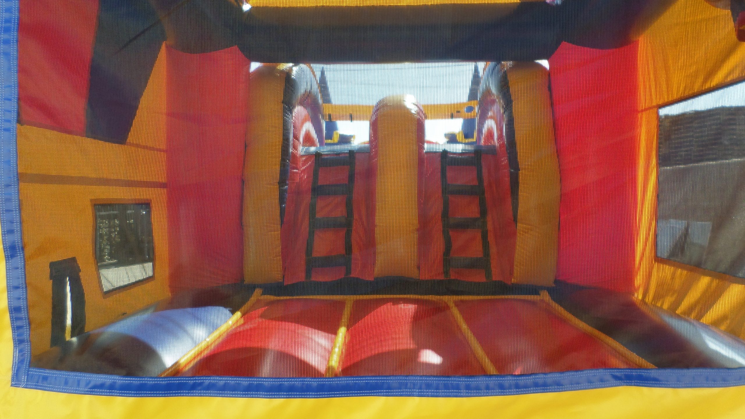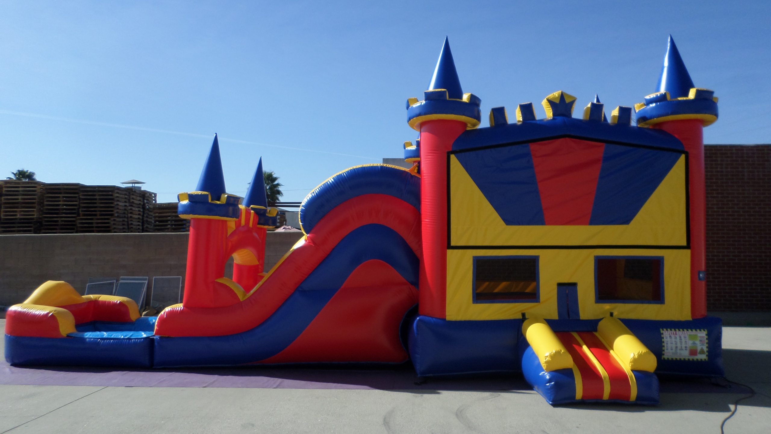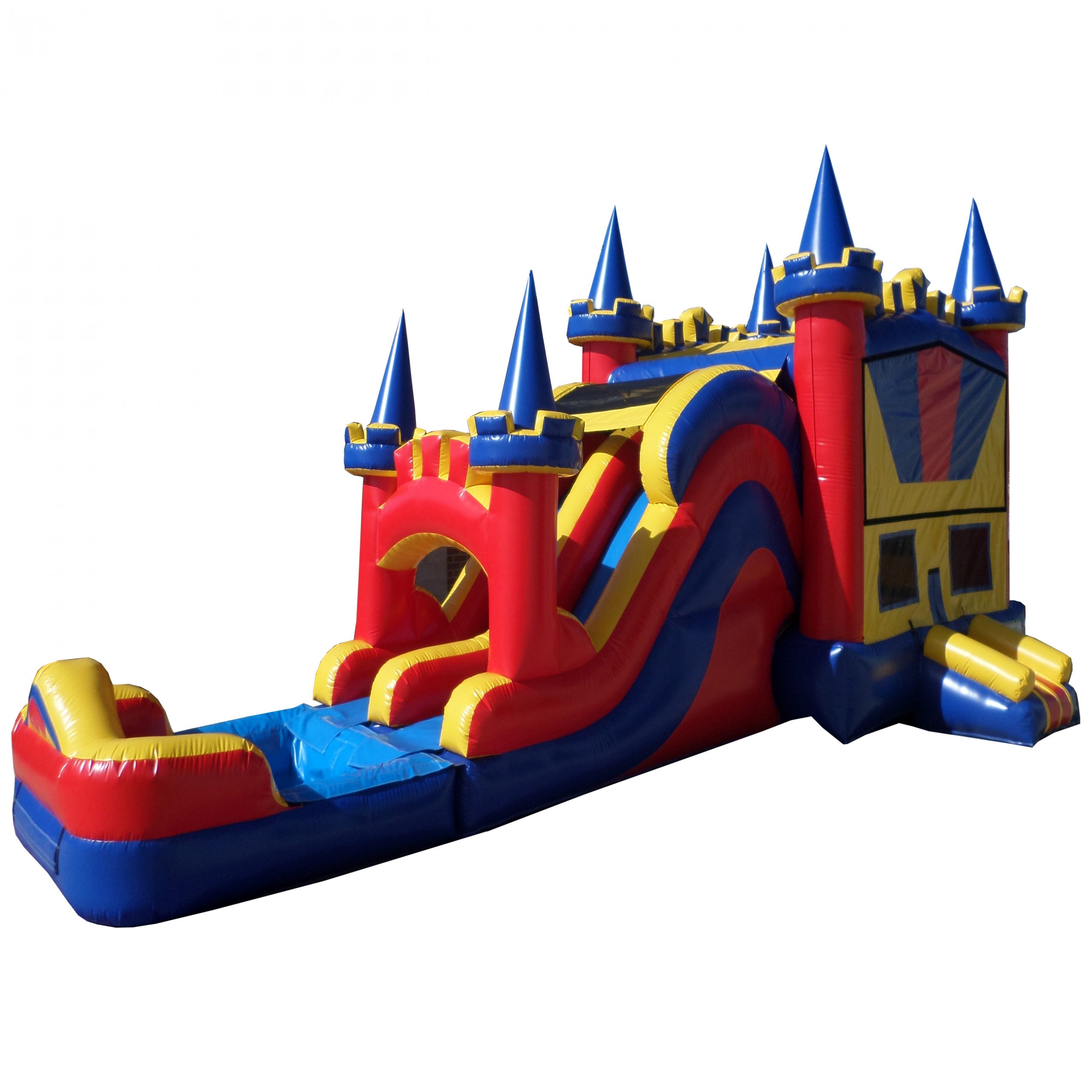 Bring big fun to any party with this colorful inflatable wet & dry castle combo. Designed like a vibrant royal castle with majestic wizard hat towers, this unit features a spacious bounce area, tall dual lane slide and a pool for non stop excitement. Made from durable, commercial grade material, this inflatable is built for safety and long-lasting use. Bright red, blue and yellow colors make it an eye catching centerpiece that kids absolutely love. Easy to set up and ideal for outdoor fun, it keeps children active, entertained and smiling for hours.