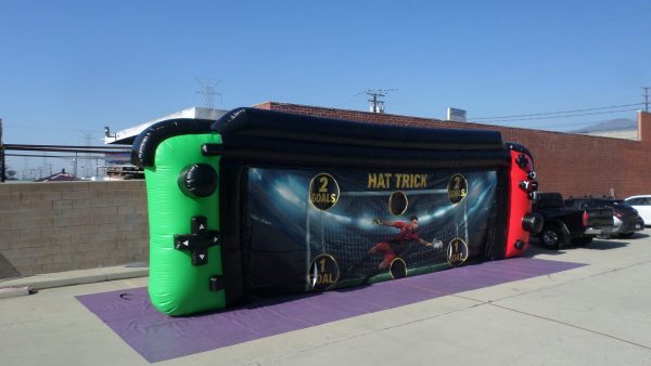 With bright green and red side inflatable game controllers, this attraction is eye catching and fun for all ages. It’s perfect for soccer team practices, birthday parties, school events, sport themed parties, festivals and corporate events. Durable, safe and easy to set up, the inflatable Hat Trick soccer game delivers fast paced fun and competitive excitement for players and spectators alike.